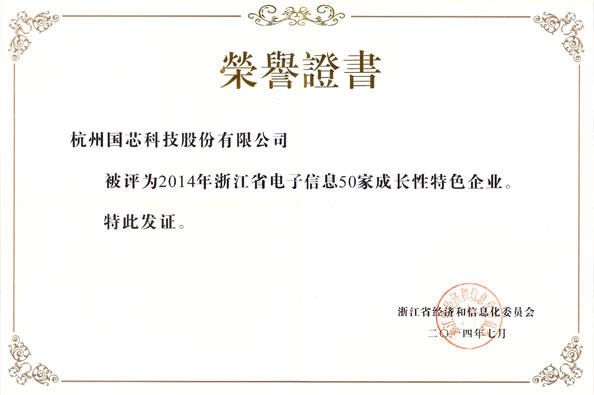 在相關(guān)部門推薦與初審的基礎(chǔ)上,經(jīng)浙江省經(jīng)信委研究審核,共有100家企業(yè)入圍2014年(第14屆)浙江省電子信息產(chǎn)業(yè)重點(diǎn)企業(yè)名單,其中:杭州國芯科技股份有限公司等榮獲2014年(第14屆)浙江省電子信息50家成長性特色企業(yè)。