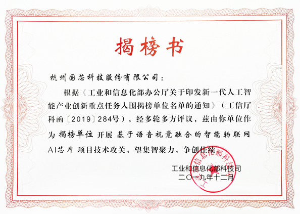 近日,工業(yè)和信息化部辦公廳公布了“新一代人工智能產(chǎn)業(yè)創(chuàng)新重點(diǎn)任務(wù)的入圍揭榜單位和項(xiàng)目名單”。國芯的終端神經(jīng)網(wǎng)絡(luò)項(xiàng)目--基于語音視覺融合的智能物聯(lián)網(wǎng)AI芯片,被列入揭榜名單。