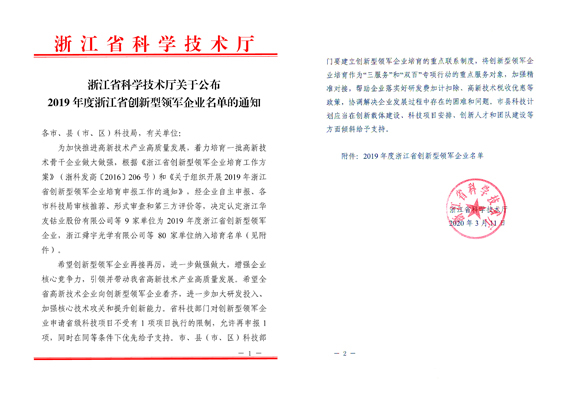 2020年3月,浙江省科學(xué)技術(shù)廳公布9家單位為2019年度浙江省創(chuàng)新型領(lǐng)軍企業(yè),80家單位納入浙江省創(chuàng)新型領(lǐng)軍企業(yè)培育名單,杭州國(guó)芯科技股份有限公司入列浙江省創(chuàng)新型領(lǐng)軍企業(yè)培育名單。